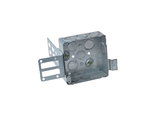 BOX52171-KSSX - 4"X4"X2-1/8" STEEL STUD SQUARE BOX, SILVER  The STEEL STUD Box series is designed to facilitate rapid installation thanks to the embossed mounting, ears back, flat sides and brackets suitable for indoor steel stud walls systems. Available in non-gangable version for armoured and non-metaliic cable, they are certified CSA.